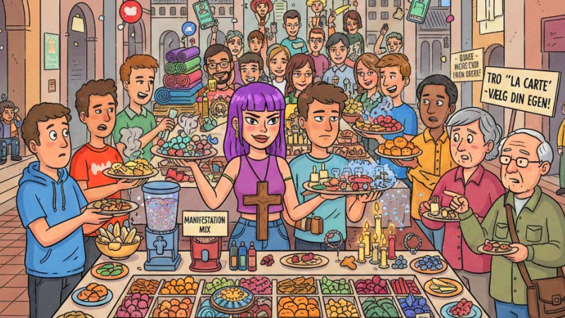 Som sociologen Mar Griera peger på, så er de unges stigende interesse for spiritualitet ikke noget med en stigning i den klassiske religiøse praksis, da konventionelle ritualer som bryllup og dåb i kirken fortsat falder. I stedet er der tale om "religionsshopping", hvor de unge bruger elementer af tro som et eksotisk fænomen eller en art kulturel fetich. Med andre ord plukker de lidt fra den ene og lidt fra den anden efter forgodtbefindende, de blander meditation og yoga med at tænde lys og anvender religiøse symboler som kors. En slags ‘all you can eat’-buffet.