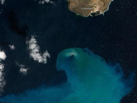Der blev i forbindelse med vulkanudbruddet taget en del satellitbilleder af havet over vulkanen, og et af billederne er nu gået hen og blevet et vinderfoto.