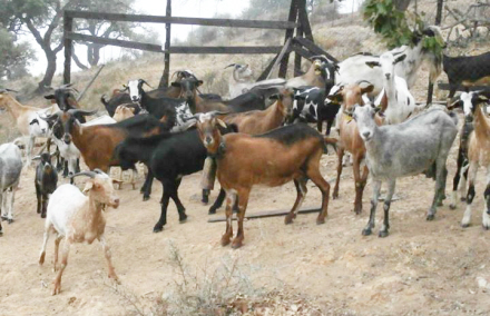 En flok geder på vejen