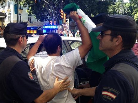 Anholdelserne skete efter, at hen ved 800 deltagere i marchen ”Andalucía a pié” var ankommet til Málaga, og det var en del af de happenings, der arrangeres af fagforbundet SAT. Det oplyser parlamentsmedlem og borgmester i Marinaleda Kommune, Juan Manuel Sánchez Gordillo, alias Robin Hood-borgmesteren.