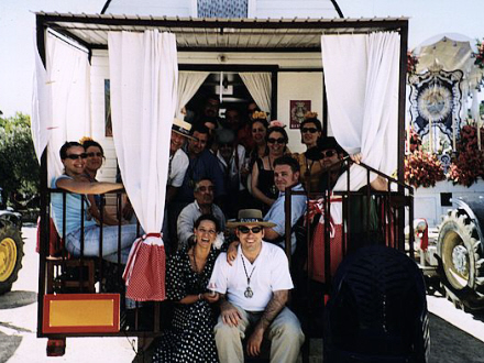 Der er høj stemning under turen fra hjembyen til El Rocio