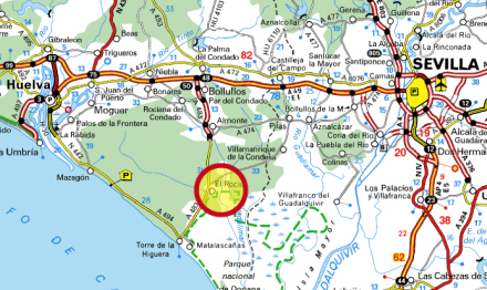 Afstande til El Rocio fra: Huelva 66 km., Sevilla 81 km., Málaga 295 km. og Madrid 607 km. Klik her for at komme til interaktivt kort på ViaMichelin