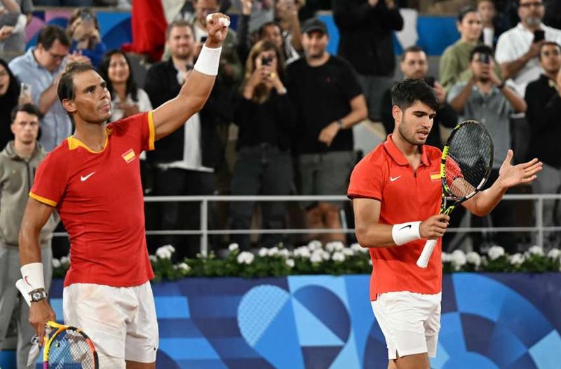 Carlos Alcaraz og Rafa Nadal spillede lørdag double mod Andrés Molteni og Máximo González fra Argentina.