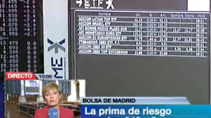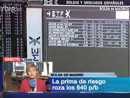 Risikopræmien på de 10-årige statsobligationer steg til historisk rekord på 610 basispoint. Det sendte renten op på 7,26 procent, og samtidig faldt aktieindekset IBEX35 på børsen i Madrid med 5,82 procent til 6.246,30.