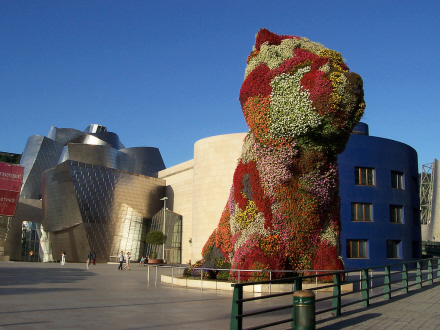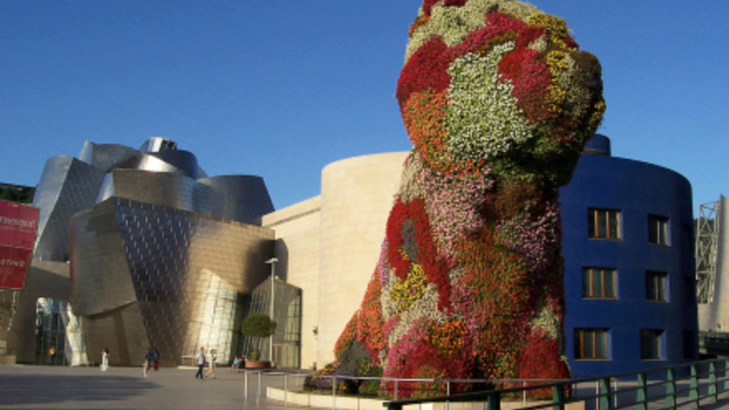 I 1980’erne blev Bilbao ramt af en krise og måtte genopfinde sig selv. Derfor hyrede myndighederne arkitekten Frank O. Gehry til i samarbejde med Guggenheim-fonden at ændre byens image fra en forurenende industriby til en attraktiv kunstby. Den baskiske regering byggede og betalte museet, mens Guggenheim-fonden leverede kunsten. Museet stod færdigt i 1997.
