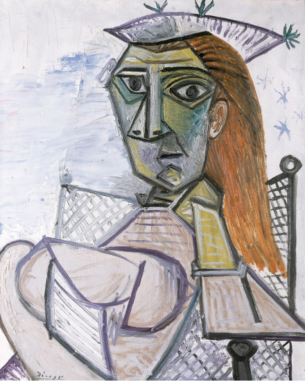 Kvinde siddende i stol. Oliemaleri fra 1941 af Pablo Picasso