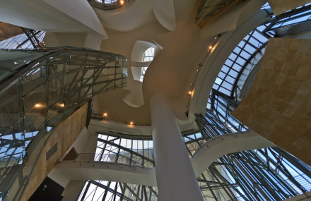 De mere end én million årligt besøgende kommer i lige så høj grad for at se bygningen som selve værkerne inde på museet. Bygningens facade glider ud i ét med tagene. Der er ikke som i traditionelle bygninger skift i materialerne. De titanium-, glas- og sandstensbeklædte flader spejler lyset fra døgnets rytme – om det så er lyset fra solen eller lyset fra byen lamper. Det giver et fantastisk lysspil og tilfører en ekstra dimension til arkitekturen.