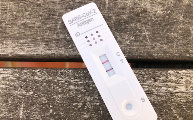 Men dagen derpå slap heldet op. Jeg var pludselig voldsomt ikke-aldersvarende tyngdekrafts-udfordret på min gåtur i solen på campoen om eftermiddagen, og da jeg kom hjem, tog jeg en ny antigentest …