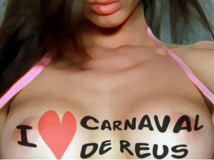 Den provokerende plakat er et nærbillede af en kvindebarm, hvorpå der på tværs af brysterne er malet et hjerte og står ”Carnaval de Reus” i rødt.