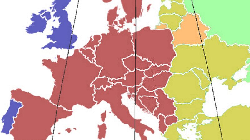 Set med naturens øjne er det forkert, at Spanien i øjeblikket ligger i den centraleuropæiske tidszone. Det skyldtes, at general Franco i 1940 besluttede at tilpasse sig Hitlers Nazi-Tyskland. Sådan har det været lige siden, på trods af at Spanien, som tegningen ovenfor tydeligt viser, ligger indenfor GMT-meridianen. Ligesom Portugal.