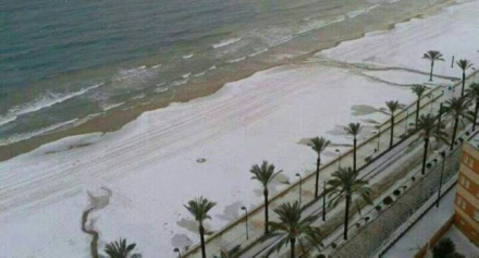 Men også på Costa Blanca falder sneen, og flere strande var i går dækket af et fint lag hagl og snesjap. I de indre egne i Valencia og Alicante kommer der op til fem cm i højder over 600 meter.