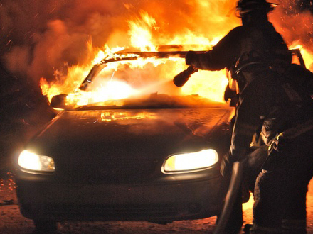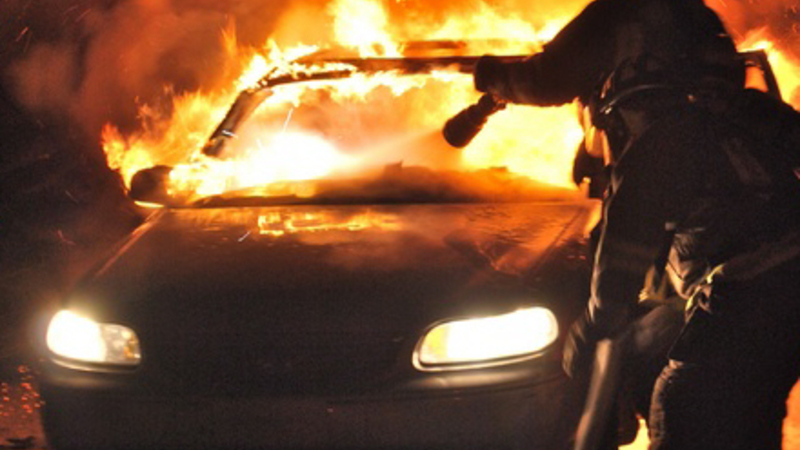 Da kvinden stoppede hældte manden brændbar væske over hendes bil og satte ild til den. Kvinden var rent faktisk på vej hen til sin advokat for at blive separeret fra manden.