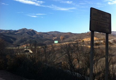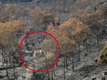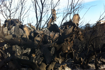 Efter branden står bassinet ene tilbage omgivet af brændt natur