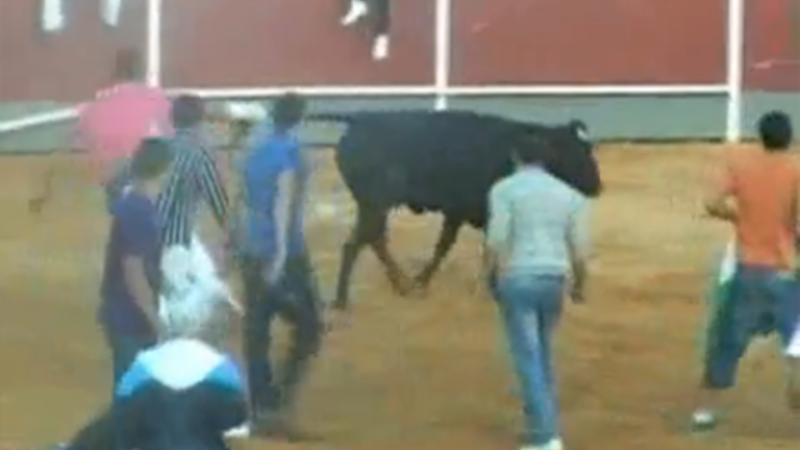 Seks unge blev i går anholdt, sigtet for dyremishandling. Sigtelserne er baseret på videooptagelser af mishandlingen (se foto, red), der fandt sted i tyrefægterareanen i Alhaurín el Grande tidligt søndag morgen. Billederne viser, hvordan en gruppe unge mænd slår, skubber og mishandler dyret, som til sidst måtte aflives på pladsen.