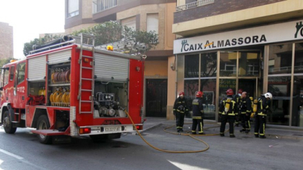 En desperat 47-årig kvinde, enke, og mor til tre - den yngste 12 år - satte mandag formiddag ild til sig selv i en afdeling af La Caixa i Almassora, i Castellon Provinsen.