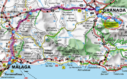 Sierra Nevada ligger 2½ times kørsel fra Málaga og 1½ time fra Middelhavet ved Motril. Man klarer fint turen frem og tilbage på én dag.