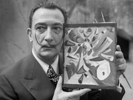 Surrealistisk kunstner med et ret surrealistisk overskæg. Den catalanske maler beskrev selv sit spidse ansigts-hår som "antenner til at fange kunst med". Han brugte daddel-sukker til at spidse enderne, hvilket efter Dalís mening også kun ville tiltrække "rene fluer ".