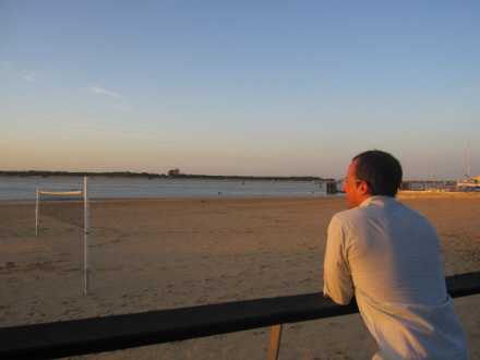 Her spejder Nicolas i det røde aftenlys over mod naturreservatet La Doñana.