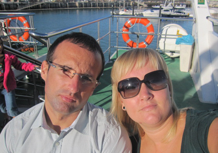 Ombord på færgen til Cádiz. Nicolas 32 år og læge, Patricia 27 år og psykolog. Begge uddannet ved universitetet i Málaga.