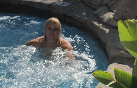 Først skulle der slappes af - her Patricia i hotellets jacuzzi.