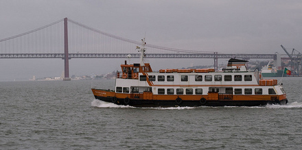 Den ligger i 'Calcilhas' på den modsatte side af floden El Tajo. For at undgå bilen og få en ekstra oplevelse, tog vi færgen, der sejler fra 'Cais de Sodre.' Færgerne sejler med få minutters mellemrum.