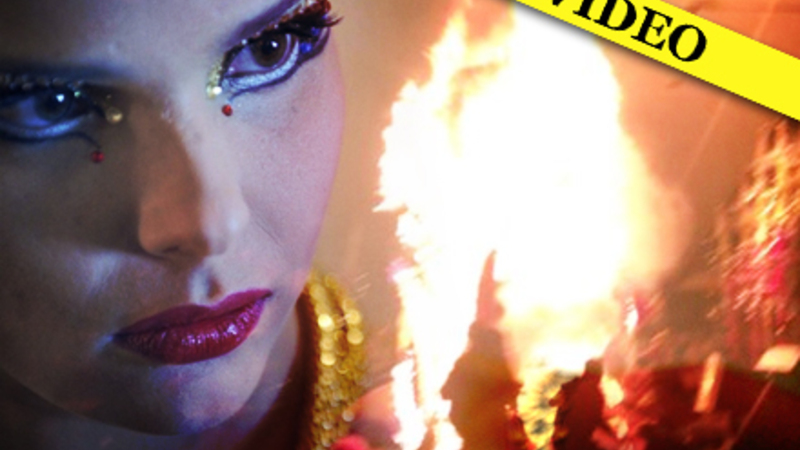 Der skulle kun 14 katastrofale sekunder til for at den 25-årige karnevalsdronning, Saida Prieto, blev omhyldet og vansiret af flammer.