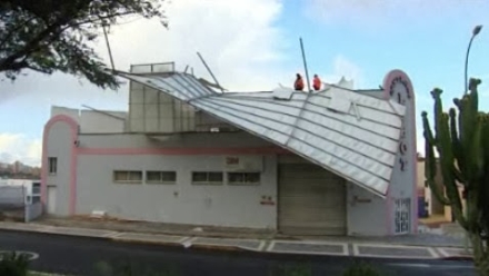 Et tag fløj af en lagerhal i et industriområde lidt udenfor Las Palmas, og flere solpaneler blev flået op af den kraftige vind og landede på Las Coloradas fodboldbanen i La Isleta.