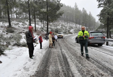 Vejene op til Spaniens højeste bjerg, Teide på Tenerife, hvor de ni vandrere var forsvundet, blev lukket på grund af sne og blæst. Flere træer og pæle var væltet ned over kørebanen.