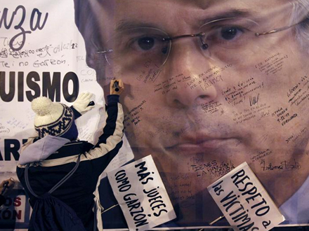 Dommen over Baltazar Garzón fik lørdag omkring 2.000 mennesker til at trodse vinterkulden og protestere uden for Højesteretten i Madrid. ”PP's retfærdighed: Camps slipper, Garzon skyldig” og ”Ned med fascisterne i Retten” var nogle af de slagord der lød uden for Højestret i protest mod det spanske retsvæsen.