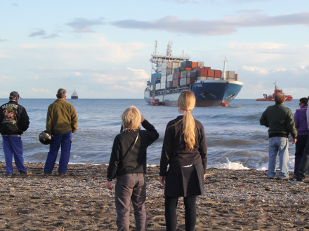 Det var spændende for både store og små at se det store, grundstødte skib (Læserfoto: Arne Wulff)