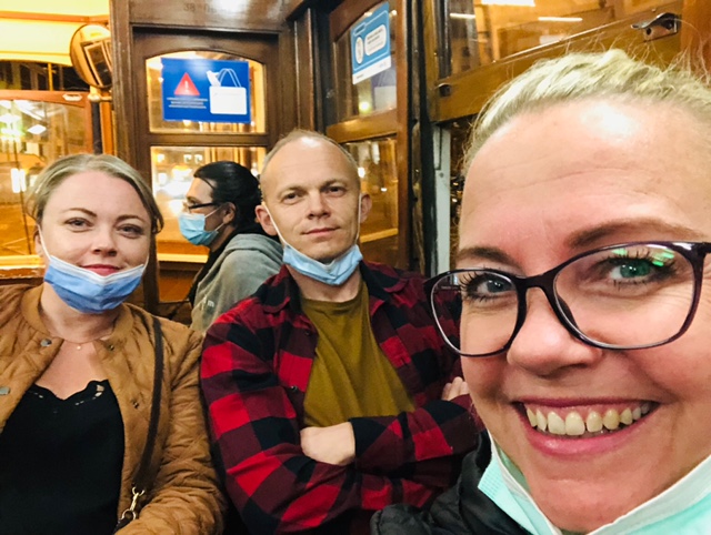 Jeg havde fået anbefalet at stå på 28’eren på en af endestationerne, så man er mere sikker på at få en plads. Der er 20 siddepladser, og 38 ståpladser! Så fyldte vogne oplevede vi trods alt ikke, men det må være ret ubehageligt. Mange andre havde lavet samme plan som os, men efter godt en time i kø, kom vi ind og fik alle tre en siddeplads.