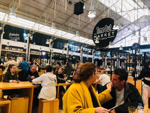 Vi endte med at gå tilbage igen og fik frokost i Time Out Market, der er noget ala Torvehallerne i København - et sted med forskellige mindre mad- og drinksboder hele vejen rundt og så et stort fælles spiseområde i midten.