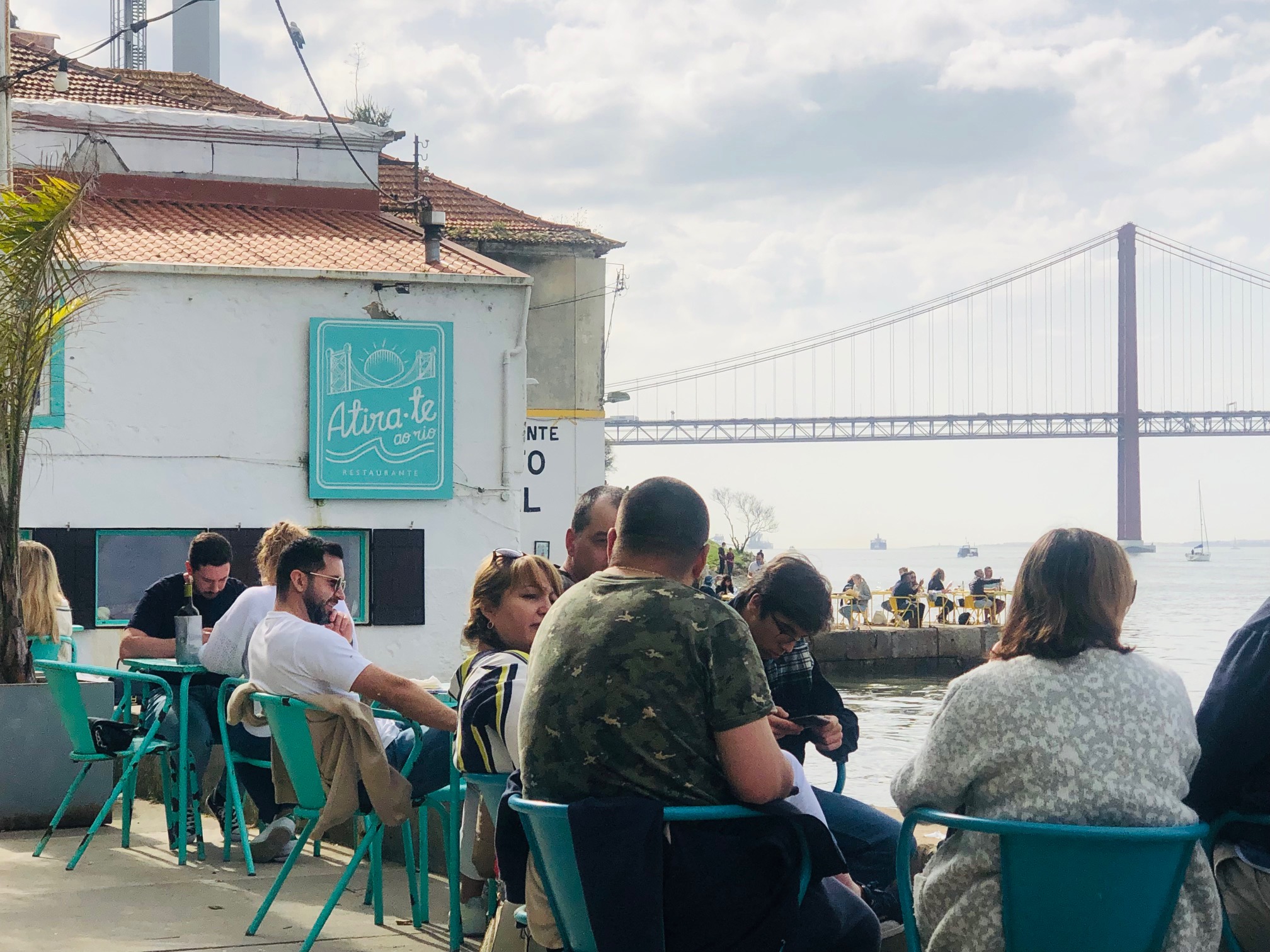 Turen fra færgen går man langs med vandet, hvor der er udsigt til den smukke røde bro Ponte 25 de Abril