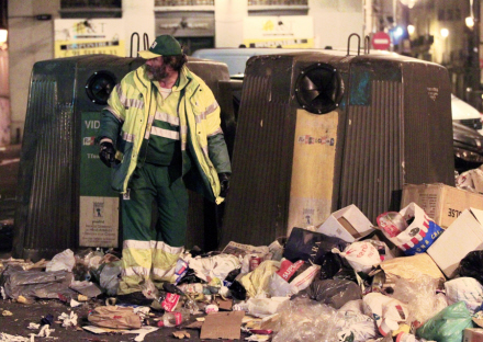 Lørdag havde borgmesteren fået nok, og hun hyrede et privat renovationsfirma til at fjerne det værste skrald i gaderne. I alt blev 60 ton affald kørt væk. Men det hele måtte foregå under politibeskyttelse, da der var mange demonstranter i gaden. Det hele endte med en solid ekstraregning til Ana Botella efter der blev brugt sammenlagt 8.716 arbejdstimer.