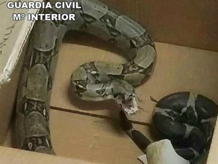 Politiet på De Kanariske Øer er gået på jagt efter slanger, øgler og insekter, som smugles ind på øerne. I to kufferter, som blev smuglet ombord i et fly fra Madrid til Gran Canaria, blev der fundet fem slanger, to frøer, to øgler, massevis af snegle, 200 kakerlakker, 3500 fårekyllinger og 100 græshopper.