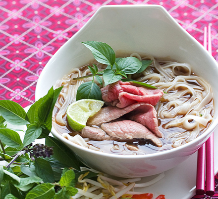 Oksekøds-nudelsuppe til morgenmad? Det siges, at når først du har fået en god pho, vil du også have det til frokost og aftensmad. Pho er nationalretten i Vietnam, selvom den er forholdsvis ny. I begyndelsen af det 20. århundrede introducerede de koloniserende franskmænd oksekød til de lokale kokke, som derefter tilføjede noget chili, fiskesauce, krydderier, ris og nudler for at give maden et lokalt twist. Retten stammer fra landets nordlige del, og selvom suppen nu er udbredt til hele landet, er Hanoi er stadig arnestedet for ”den helt rigtige pho”. Hver eneste morgen står gadekøkkenerne side om side, hvor kokkene knokler med oksekød, bouillon og nudler og langer den ene skål efter den anden over disken til skaren af morgen-sultne japanere.