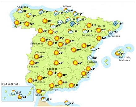 Sommervejret trænger i dag ind over Galicien i den nordvestlige del, og breder sig efterhånden resten af Nordspanien.