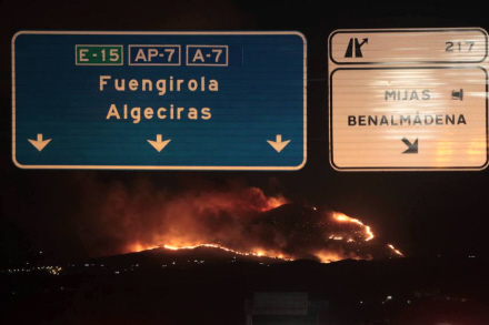 Høje temperaturer i kombination med kraftig blæst betød, at ilden bredte sig hurtigt i de knastørre skovområde. En afvænningsklinik for narkomaner, nærliggende landejendomme og et stort antal stalde blev med det samme evakueret. Flere huse i området ved La Cala Golf er brændt ned.
