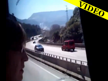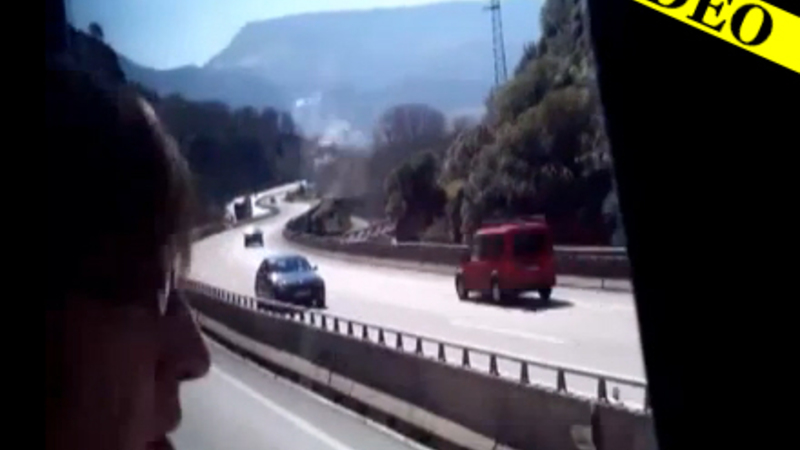 Dramaet blev optaget på en mobiltelefon af en studerende, der kørte i bus ved siden af kamikaze-bilisten på en landevej, der går parallelt med motorvejen.