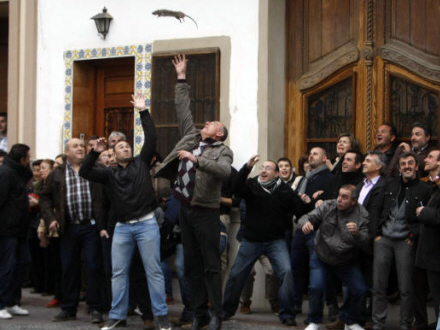 Det er derimod døde rotter, der flyver gennem luften i den lille valenciaforstad hvert år i den sidste weekend af januar. Traditionen minder meget om den danske fastelavn, med at slå katten af tønden. Men i El Puig slår man i stedet rotten af krukken. Og lige som Danmark engang puttede levende katte i tønderne, var der engang levende rotter i de lerkrukker, der skal slås i stykker af en person med bind for øjnene.