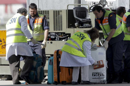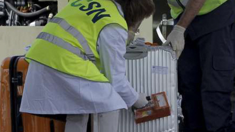 Her tjekkes al bagage fra flyet for radioaktivitet