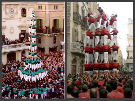 Los Castells går mere end 200 år tilbage i tiden, og består af menneske-pyramider af dansere. I nogle tilfælde når de op i ti personers højde. De første menneske-pyramider i Spanien blev udført i fattige arbejderkvarterer langs Ebro-flodens delta i Valencia. I det 19. århundrede spredte traditionen sig til Penedés-området i Tarragona og Barcelona. I dag bruges Los Castells som et klassisk symbol i Catalonien.