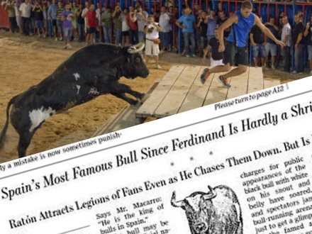 Spaniens mest kendte tyr siden Ferdinand er næppe nogen visnende viol. Sådan indleder det ansete amerikanske tidsskrift The Wall Street Journal en artikel om den spanske tyr Ratón, som som efter 11 års kamp i arenaen allerede er en levende legende.