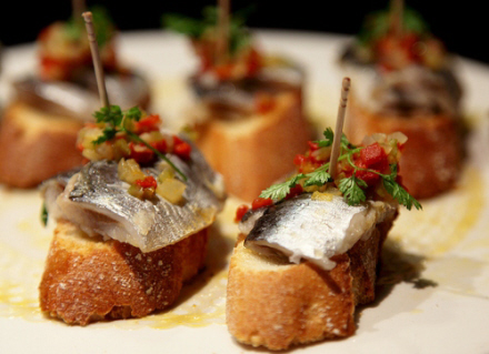 Mange af turisterne besøger barerne i San Sebastian gamle bydel, hvor de står i kø for at prøve regionens varemærke "pintxos". Pintxo betyder "spyd" og den bogstavelige oversættelse giver meget god mening: Adskillige velsmagende elementer spiddet fast til en skive brød.