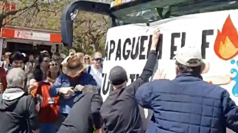Som avisen El Nacional beretter, skete det konkret på Sardenya-gaden, et af turisternes yndlingssteder. Demonstranterne placerede sig først foran bussen, forhindrede den i at køre, og derefter begyndte de at sprøjte vand på passagererne.