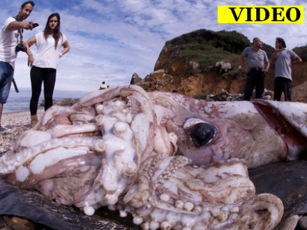 En kæmpe blæksprutte er skyllet i land i det nordlige Spanien. Monsteret, der måler hele ni meter, skabte både forbløffelse og afsky blandt lokalbefolkningen.