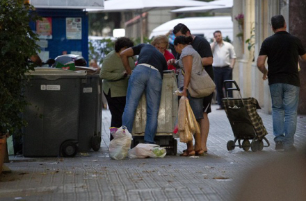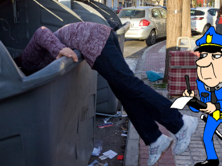 Scenariet af fattige, der leder efter mad, genbrug og andet i skraldespande og affaldscontainere, gik verden rundt sidste år. Det var amerikanske New York Times, det bragte billeder af sulte børn, immigranter og fattige spaniere, der står på hovedet i affaldsbunker for at finde et eller andet, der enten kan spises eller sælges videre for en lille fortjeneste.
