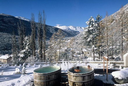 Her finder vi wellness til fingerspidserne - se bare forsidebilledet til denne artikel! Højt oppe i Stelvios National Park i Bormio, Lombardiet, i de italienske alper finder vi Bagni di Bormio Spa Resort.