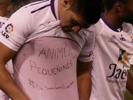 En spiller fra det spanske 2. Divisionshold Real Jaén er blevet idømt en bøde på 2.000 euro for at vise en T-shirt, hvorpå han havde skrevet ”Op med modet, små børn” - til fordel for børn med kræft.
