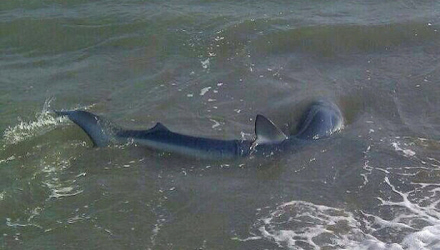 Meget tydede på, at hajen havde fået nogle skader i hovedet, og miljøbeskyttelsen besluttede derfor at putte en løkke omkring den og trække den ud på dybt vand. Hajen var helt oppe i strandkanten flere gange, desorienteret og svag.